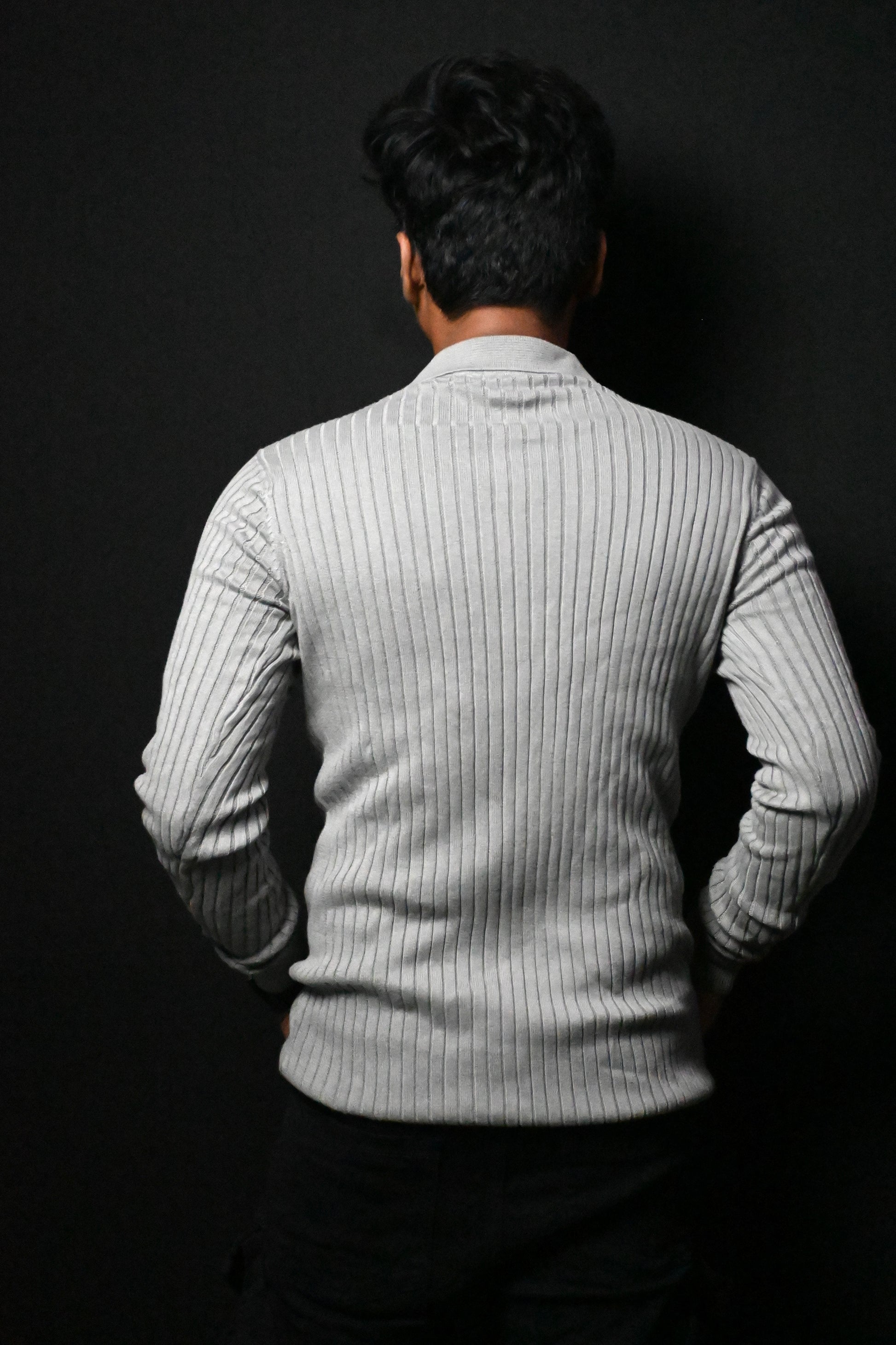 Old Money Heavy Ribbed Texture Full Sleeve Grey Polo T-Shirt
